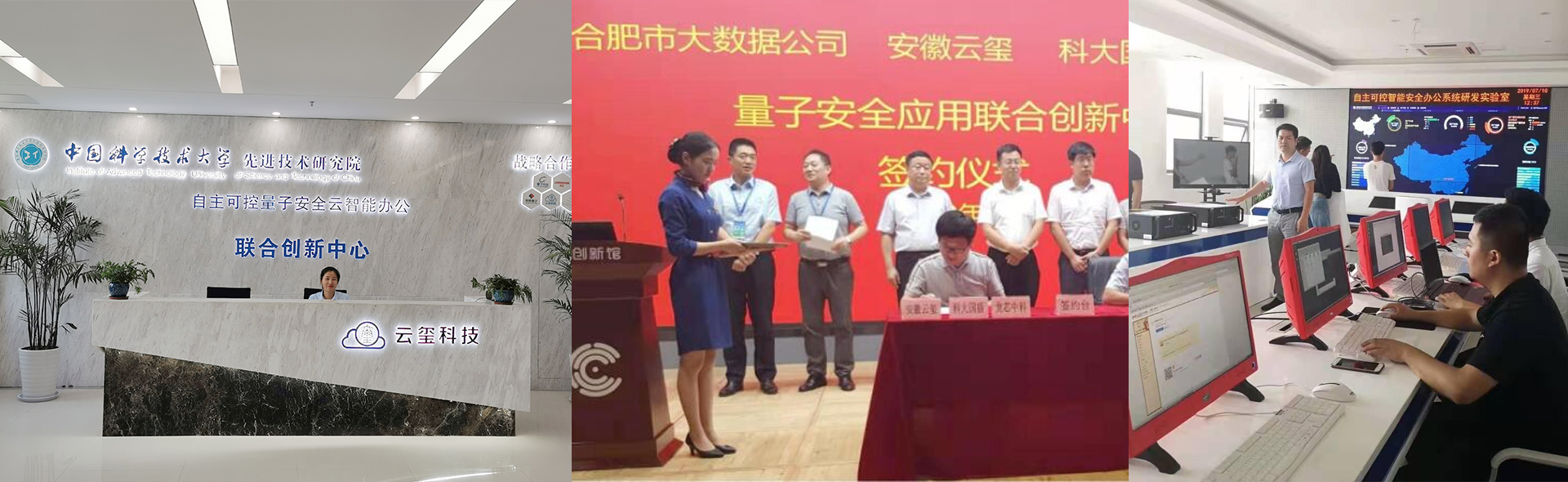 自主可控量子安全云智能辦公聯(lián)合創(chuàng)新中心由云璽量子科技、市大數(shù)據(jù)公司、科大國盾和龍芯中科聯(lián)合成立,共同開展大數(shù)據(jù)+量子安全應(yīng)用相關(guān)方向研究及量子安全應(yīng)用產(chǎn)品試點(diǎn)推廣。截至目前,該中心已經(jīng)合作研發(fā)覆蓋云、管、端的產(chǎn)品。