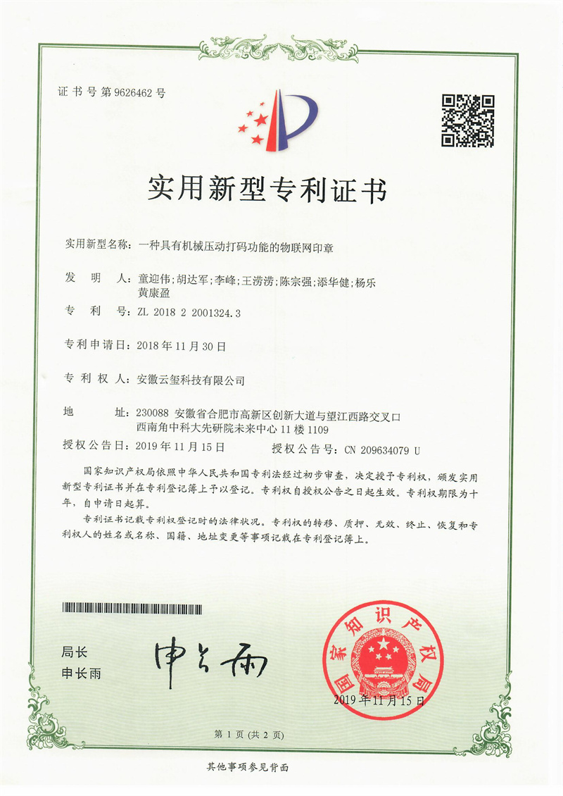 公司原創(chuàng)發(fā)明一體式智能印章技術(shù),引領(lǐng)國內(nèi)外新一代智能印簽創(chuàng)新變革。獲中日韓多項(xiàng)發(fā)明專利,徹底解決了實(shí)體印章和電子印簽管控的社會難題,獲國務(wù)院國資委全國央企熠星二等獎。公司聯(lián)合國家信息安全產(chǎn)品認(rèn)證中心、公安部三所、信通院、中國印章協(xié)會等,主導(dǎo)起草了行業(yè)首個智能印章安全認(rèn)證標(biāo)準(zhǔn)和智能印章產(chǎn)品標(biāo)準(zhǔn),引領(lǐng)了智能印章行業(yè)發(fā)展。