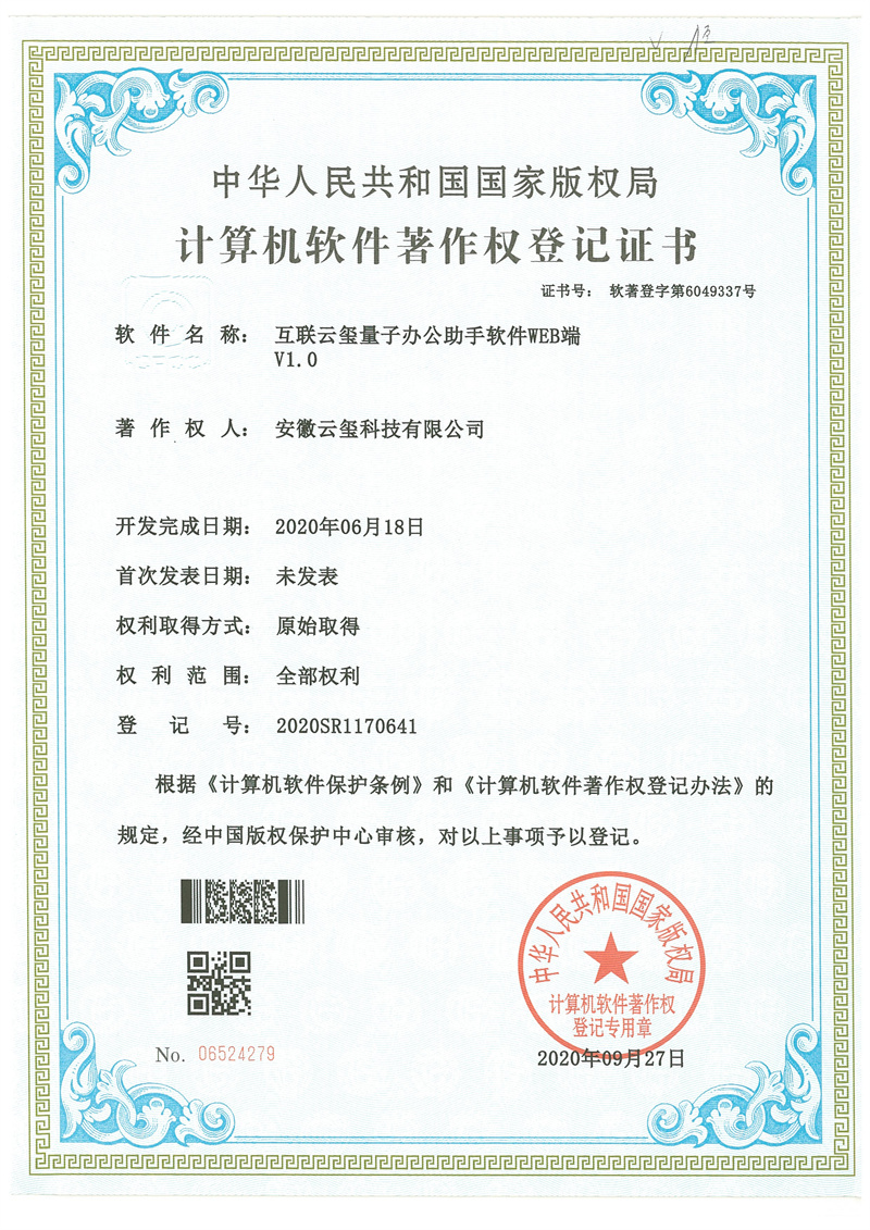 安徽云璽量子科技有限公司是合肥市量子信息產(chǎn)業(yè)重點(diǎn)企業(yè),國家信創(chuàng)工委會成員企業(yè),中國信創(chuàng)500強(qiáng)企業(yè)。主營業(yè)務(wù)包括量子安全智能印簽、量子安全智能辦公、量子安全云服務(wù),為政企客戶提供量子安全整體解決方案。
